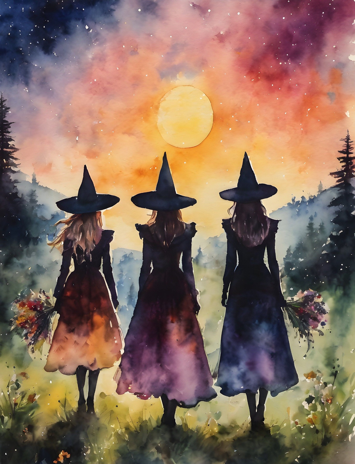 Tři čarodějky kráčí lesem, jedna kámen poznání v rukou nese, druhá zrcadlo nastavuje a třetí se nás ptá: "Kam zmizela vaše magie posvátná?"